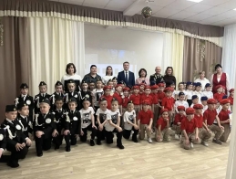 Особо трогательно праздник отметили самые маленькие жители. В детском саду № 103 кадетская группа устроила настоящий военный парад — конкурс «Смотр строя и песни». Дмитрий Михайлович Васильченко поздравил ребят и передал в «Музей Победы» детского сада ценный экспонат времен Великой Отечественной войны.