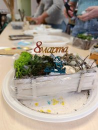 В преддверии празднования самого нежного весеннего праздника местной администрацией организовано проведение мастер-классов для наших милых женщин по изготовлению флорариума. Флорариум представляет собой миниатюрную садовую экосистему, где формируется уникальный микроклимат для теплолюбивых суккулентов, цветущих кактусов, а также плющей. Наконец, это очень красивый декоративный объект, уместный в интерьере любого стиля и не требующий много заботы. Наши милые женщины с детками, бабушки с внуками с удовольствием изготовили такое чудо и узнали об особенностях создания флорариума. Желаем всем милым женщинам каждый день побольше улыбок и счастья!