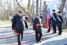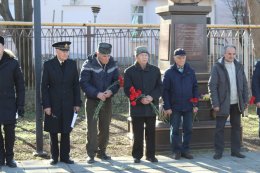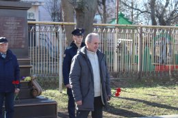 Присутствующие почтили память минутой молчания и возложили цветы к памятнику.