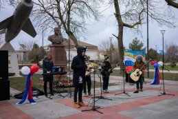 В 12:00 в сквере у памятника «Авиаторам-гвардейцам» начался концерт, участие в котором приняли местные вокалисты, коллектив «Сельчанка», учащиеся общеобразовательных школ №46 и №13, вокально-инструментальный ансамбль «Девятая планета» из города Бахчисарая.