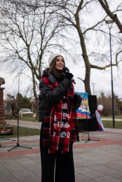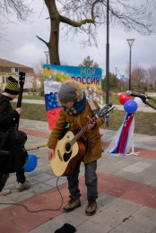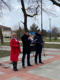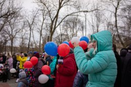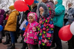 Несмотря на морозную погоду и срывающийся снег, жители Качинского округа приходили на митинг целыми семьями, чтобы выразить свою поддержку и солидарность с принятым 8 лет назад решением о возвращении Крыма и Севастополя в родную гавань. Начались торжественные мероприятия с проведения флэшмоба.