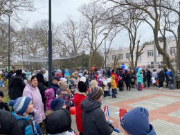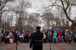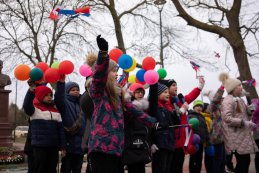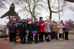 В 11:00 возле памятника «Авиаторам-гвардейцам» из воздушных шаров качинцы составили триколор. Затем на набережной выстроились буквой Z в поддержку проводимой специальной операции на Украине.