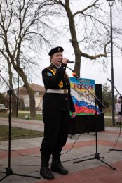 На митинге особое внимание уделили тем, кто погиб в боях за защиту национальных интересов России. Почтили память павших воинов минутой молчания. С песней «Павшим друзьям» выступил Дмитрий Васильченко.