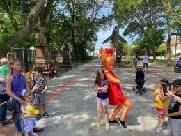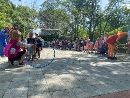 Три часа подряд с 9:30 до 12:30 три мастера по аквагриму создавали очаровательные образы для детей. Очередь к мастерам не уменьшалась на протяжении всего праздника. С 10:00 участников мероприятия веселили аниматоры в костюмах Карамельки, Скай и Единорожки. Они организовали две команды, которые участвовали в разных конкурсах и между собой соревновались в танцах, в смекалке и сообразительности. Отдельный танцевальный конкурс провели с участием родителей. С 11:00 началась шоу программа фокусника: из ниоткуда появлялись голуби, монеты, летал стол, по команде ребят в альбоме появлялись и исчезали рисунки. Очень всем участникам мероприятия запомнился енот Валера. Все желающие могли сфотографироваться с любимыми героями.