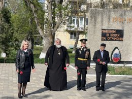 Почтили память павших воинов минутой молчания и возложили цветы к памятникам.