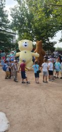 Всех ребят на входе в учреждения встречали большие ростовые куклы любимых персонажей с шоу мыльных пузырей.