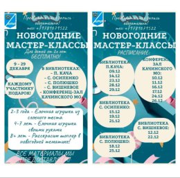 В преддверии Нового года начинаем творить чудеса! В библиотеках Качинского МО и в здании администрации начались долгожданные праздничные мастер-классы! Наш прекрасный мастер обучит ребят и даже родителей таким не сложным, но удивительным творческим техникам как: роспись на текстильном изделии, лепка из теста и декупаж! С собой — только хорошее настроение:)! Дублирую афишу для тех, кто ещё не успел побывать у нас в гостях!