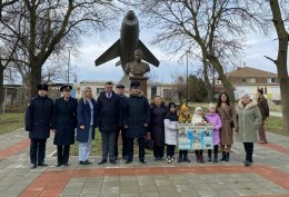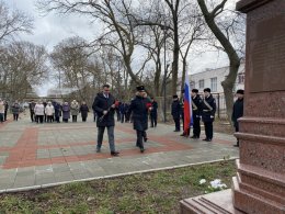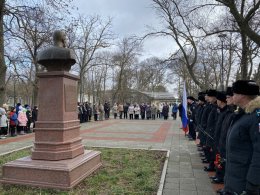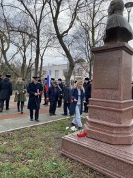 Присутствующие почтили память минутой молчания и возложили цветы к памятнику.