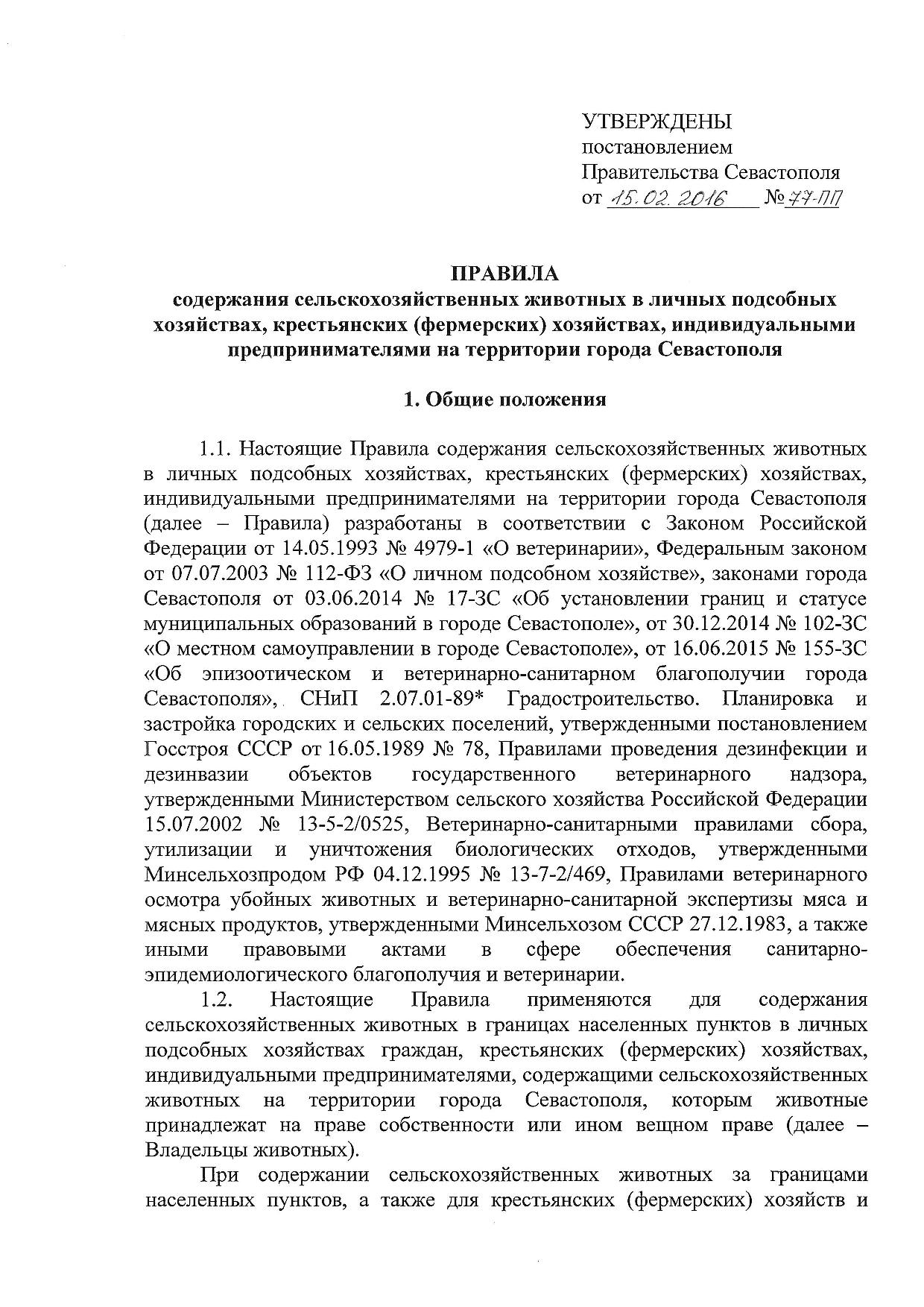 Правила содержания сельскохозяйственных животных в личных подсобных хозяйствах, крестьянских (фермерских) хозяйствах, индивидуальными предпринимателями на территории города Севастополя.