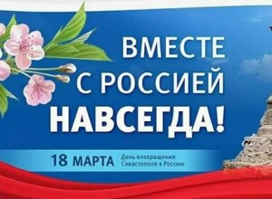 Администрация Качинского муниципального округа сердечно поздравляет с важным для каждого из нас праздником – Днём воссоединения Крыма и Севастополя с Россией! В этот праздничный день желаем всем россиянам здоровья, благополучия, дальнейших успехов в труде, реализации новых проектов и замыслов на благо нашего родного Отечества!
